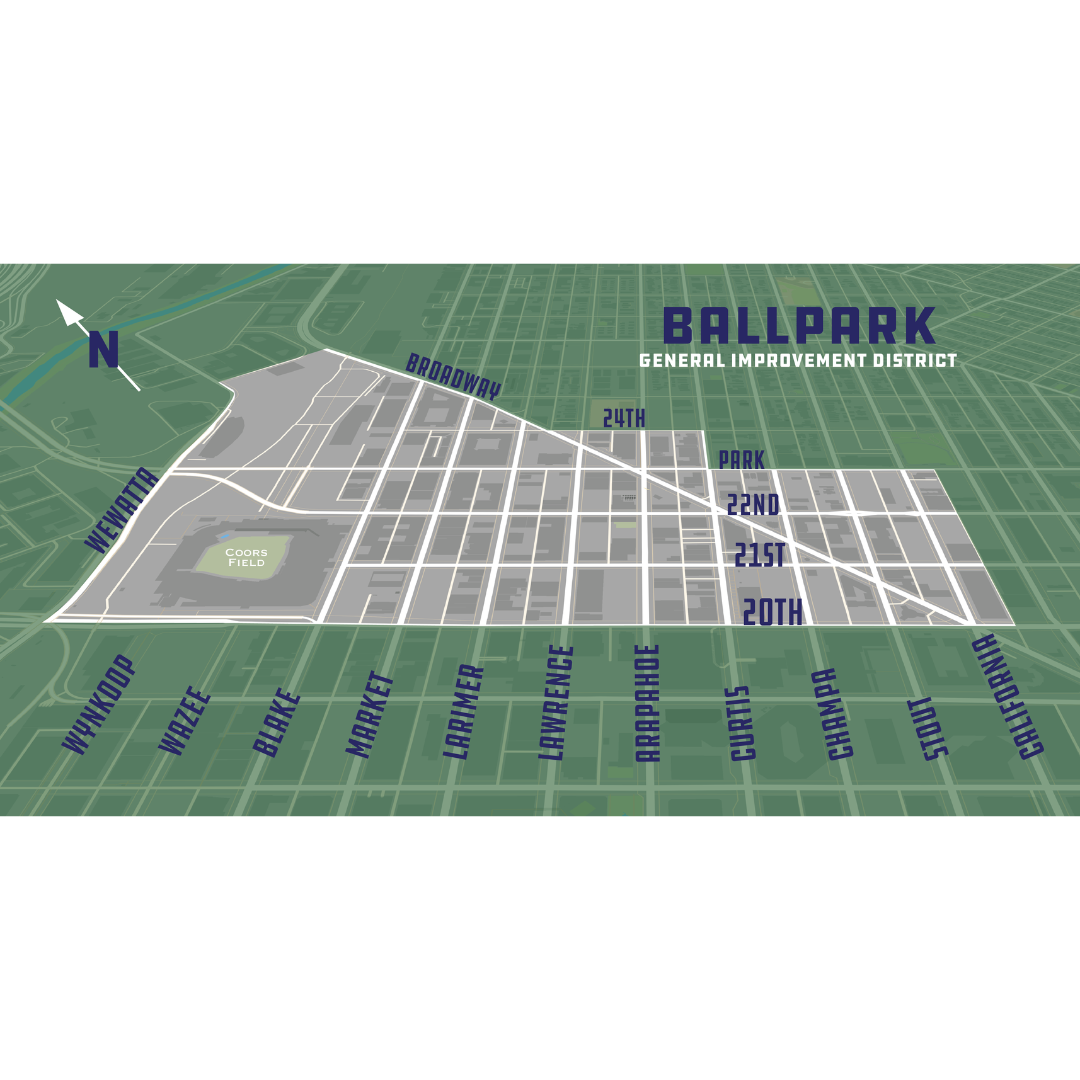 Area in Downtown Denver represented by Ballpark Collective RNO and Ballpark General Improvement District (GID).